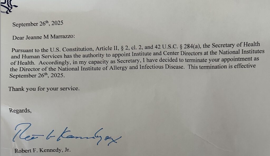 As has been widely reported, in the year since our dinner she went from celebrated leader to embattled critic. After raising alarms about what she viewed as the politicization of NIAID’s grant process and a growing hostility toward vaccine research, she was placed on administrative leave earlier this year. In September, she and vaccine researcher Dr. Kathleen Neuzil filed a whistleblower complaint alleging retaliation for those concerns. A few weeks later, she was fired — no reason given — but how can we see it as anything other than the silencing of a scientist who spoke up?